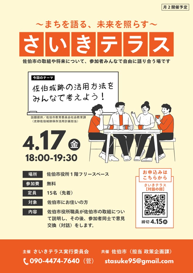 佐伯市の取組や将来について、参加者みんなで自由に語り合う場です。