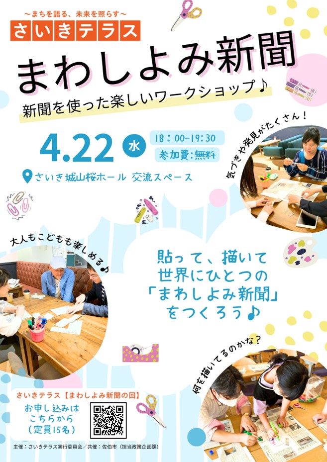 まわしよみ新聞の回 毎月第4水曜日 18:00~19:30(会場:さいき城山桜ホール)